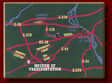 | The Museum of Transportation houses "one of the largest and best collections of transportation vehicles in the world." Located on 150 acres, the Museum is situated west of the city of St. Louis on the site of the first man-made railroad tunnels west of the Mississippi River. The site also features over four miles of switching and exhibition track, and ten buildings, one of which houses a first-rate resource library. With over seventy locomotives, the Museum has one of the most complete collections of American rail power, and its collection of automobiles, buses, streetcars, aircraft, horse-drawn vehicles and river boat material reflects the ever-changing nature of transportation. |